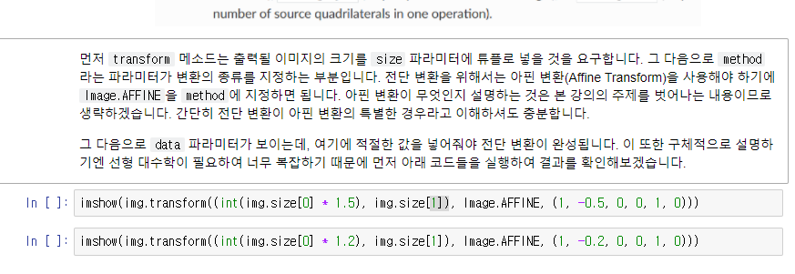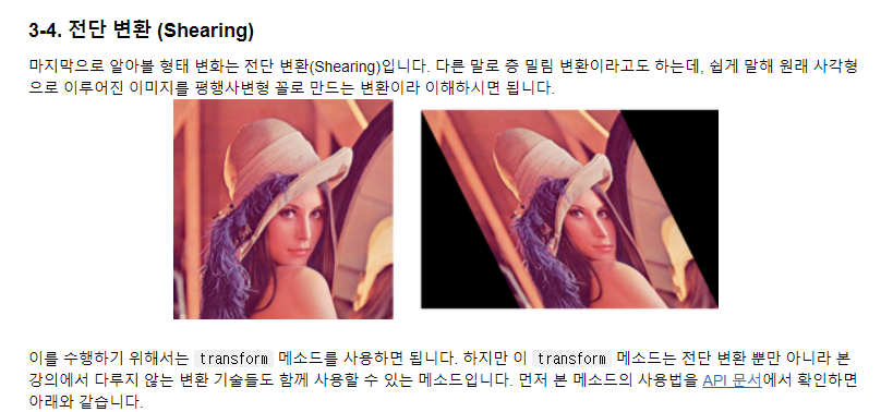 transform메소드를 사용한다. 전단변환 뿐 아니라 다른 형태의 변환기술들도 사용할 수 있다