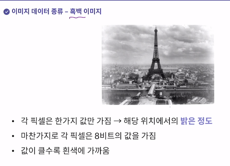 한가지 값만 가지면 흑백, 밝기만 저장함.