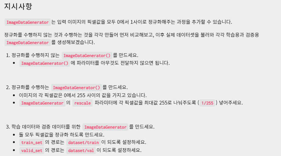 # TODO: [지시사항 2번] 픽셀값을 0~1의 값으로 정규화 하는 ImageDataGenerator를 만드세요.