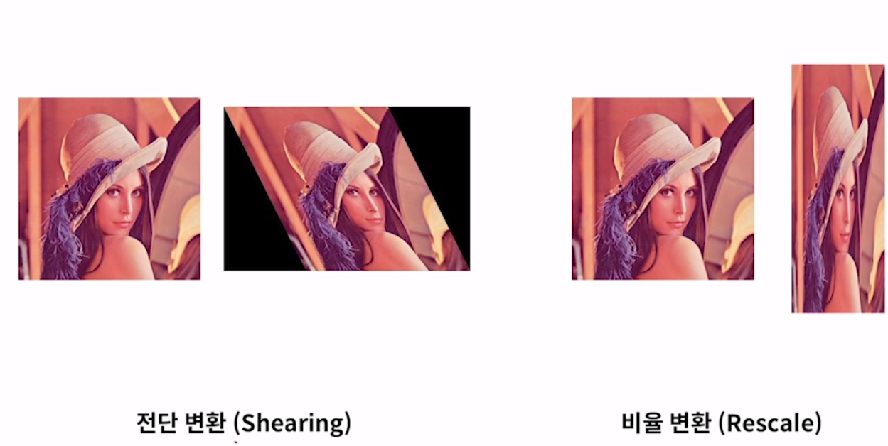 사각형의 이미지를 평행사변형 꼴로 바꾸는 변환