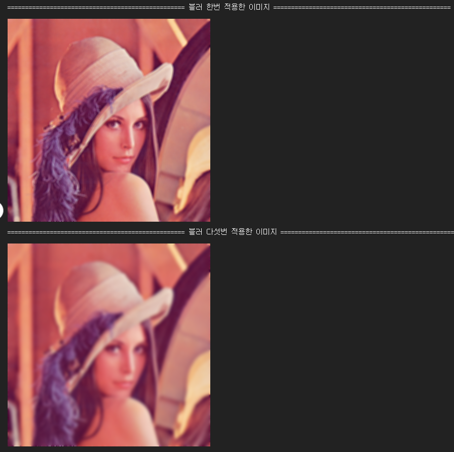 print("=" * 50, "블러 한번 적용한 이미지", "=" * 50)