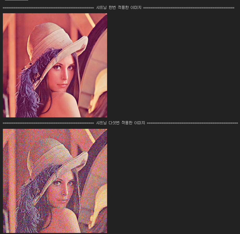 샤프닝 : noise까지도 포함, 더 선명한 이미지