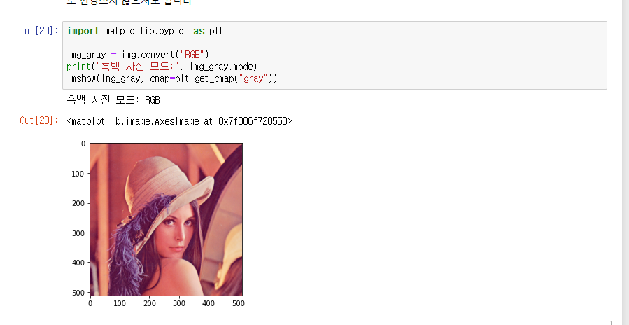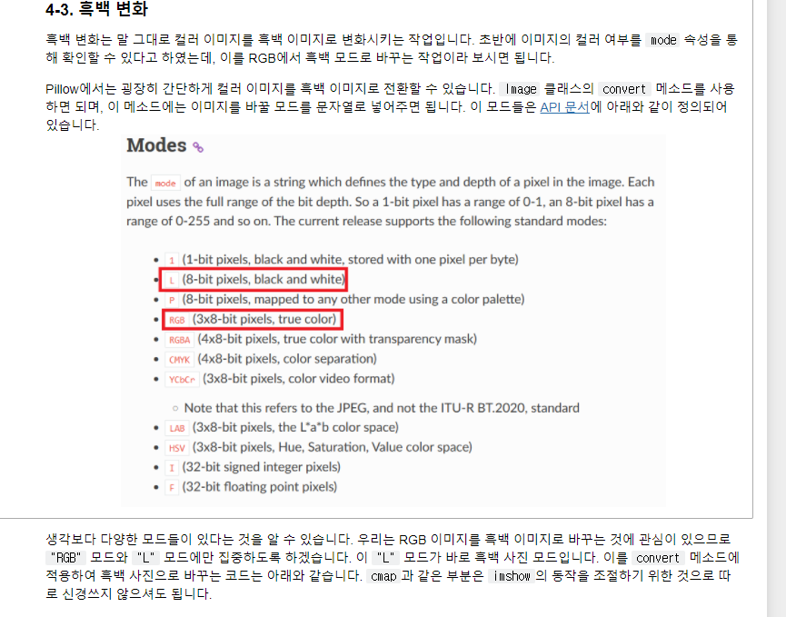 이미지의 컬러 여부는 mode속성으로 확인하는데, 이걸 RGB에서 흑백 모드로 바꾸는 작업을 한다.