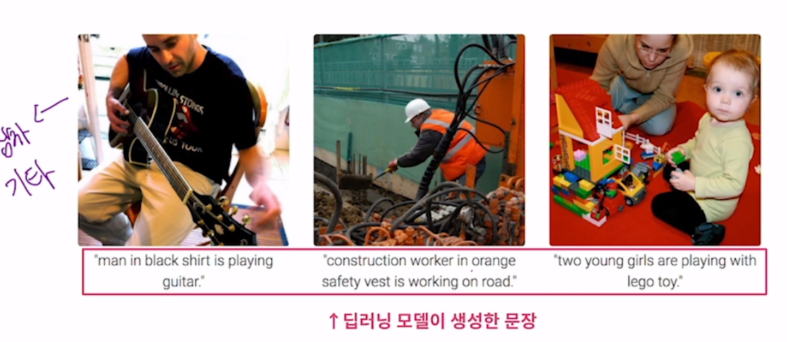사진을 보고 설명하는 기술? -> 자연어처리도 필요함