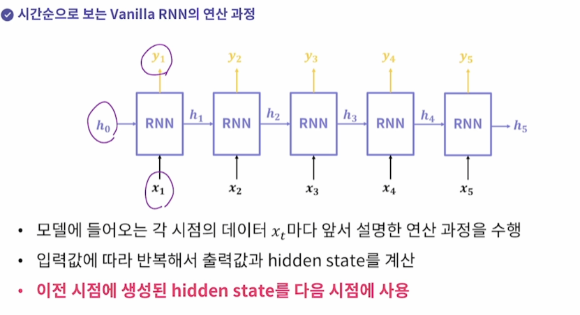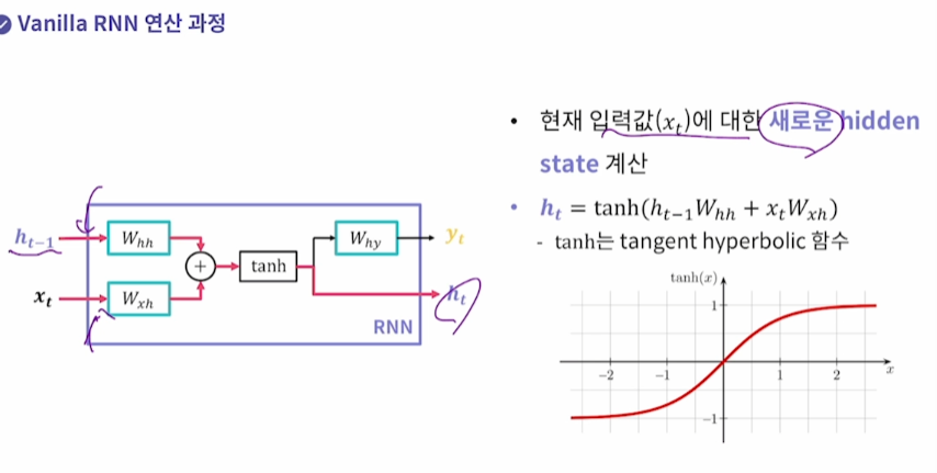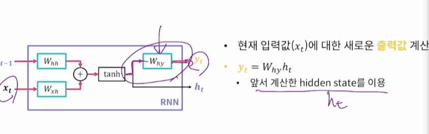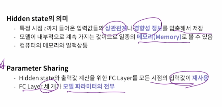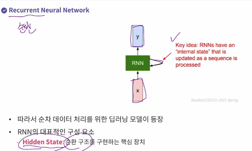 RNN은 Hidden State라는 순환구조를 가지고 있다.
