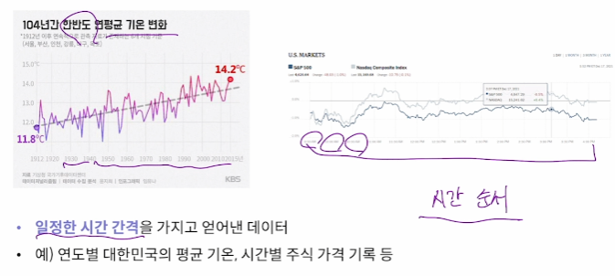 일정한 시간 간격을 가지고 얻어낸 데이터