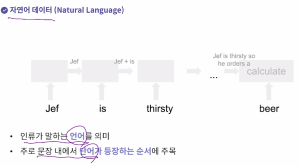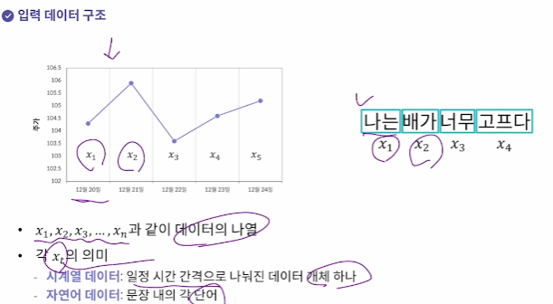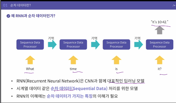 시계열데이터 같은 순차데이터(What time is it )을 처리하기 위한 모델