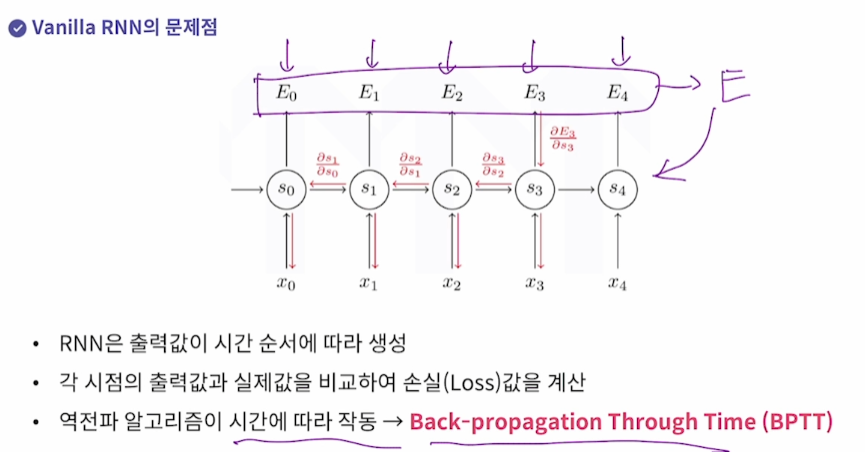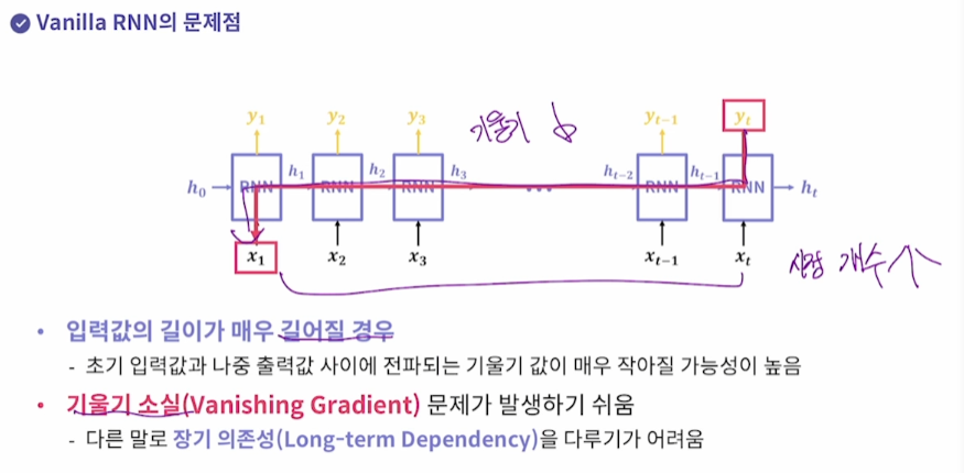 시점이 많아지면(입력값의 길이가 많아지면) 기울기 소실 문제가 발생