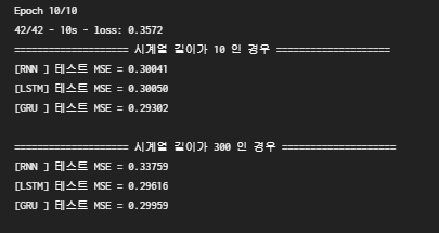 print("=" * 20, "시계열 길이가 10 인 경우", "=" * 20)