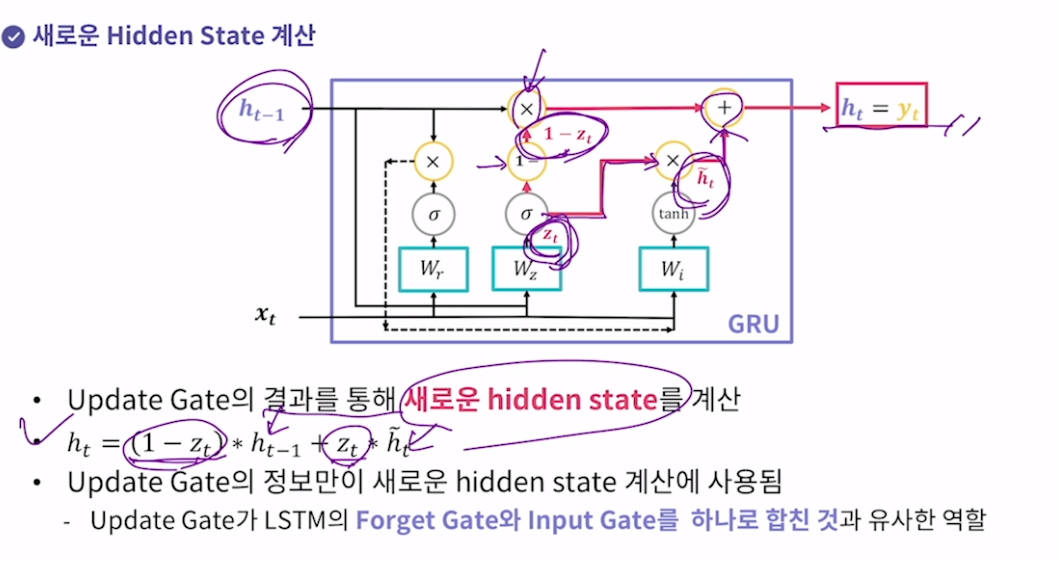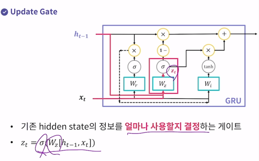 Update Gate 기존 hidden state의 정보를 얼마나 사용할지 결정