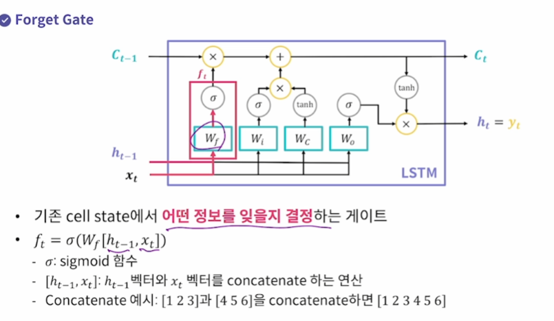 Forget Gate 이전 hidden state와 현재 입력을 가지고 어떤 정보를 잊을지 결정