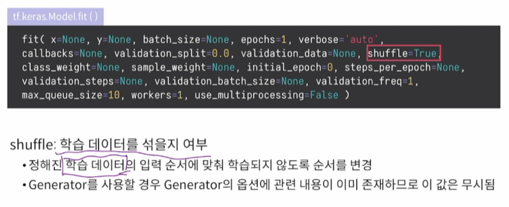 shuffle - 학습데이터만 섞고, 검증데이터는 섞지 않음.