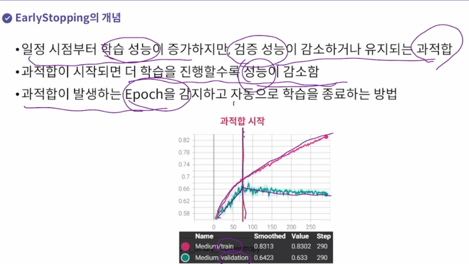 EarlyStopping은 Loss나 Accuracy를 감시하고 있다가 더 이상 좋아지지 않으면 학습 종료