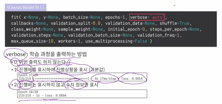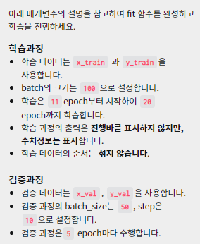 # TODO: 지시사항을 보고 fit 함수의 매개변수를 설정하세요
