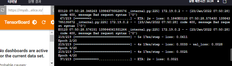 validation_data=(x_val, y_val),validation_freq=2,callbacks=[tb]) # TODO: 정의한 콜백함수를 리스트로 묶어 전달하세요