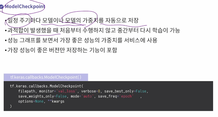 일정 주기마다 모델이나 모델의 가중치를 자동저장