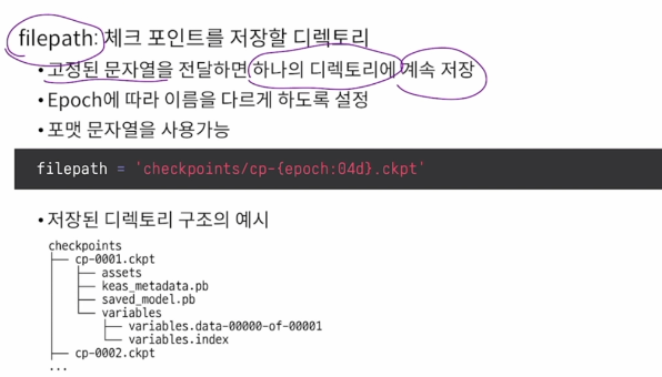 cb_chkpnt = tf.keras.callbacks.ModelCheckpoint( filepath = "./chkpnt/{epoch:04d}.ckpt",