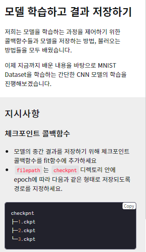 # TODO: 지시사항을 보고 체크포인트 콜백함수를 완성하세요