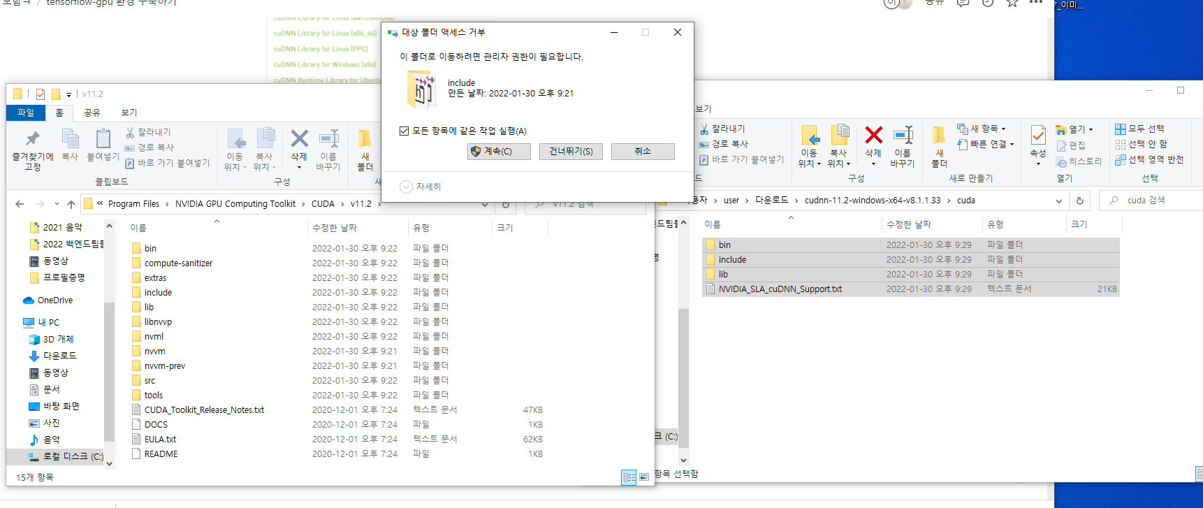 CUDA 11.2에 호환하는 cuDNN v8.1.1 설치 하고 덮어쓰기, 시스템 환경변수 설정하기