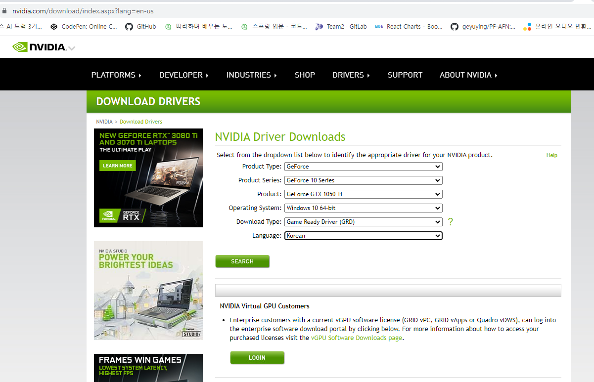 22.01.30 윈도우에 tensorflow GPU까지 연결해서 환경설정하기(cuDNN, CUDA, tensorflow, 1050Ti)