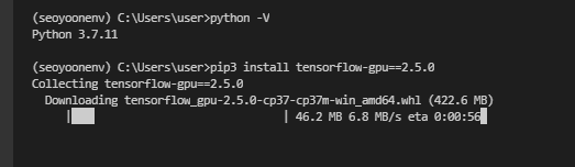 tensorflow는 python3.9이하를 지원함.. 그래서 conda로 python 다운그레이드를 실행함.