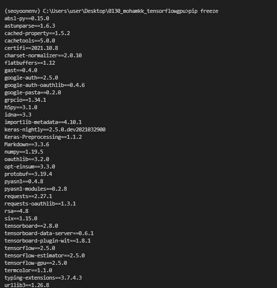 tensorflow는 파이썬 3.9이하에서만 지원하고 나는 현재 파이썬 3.10이 되어있어서