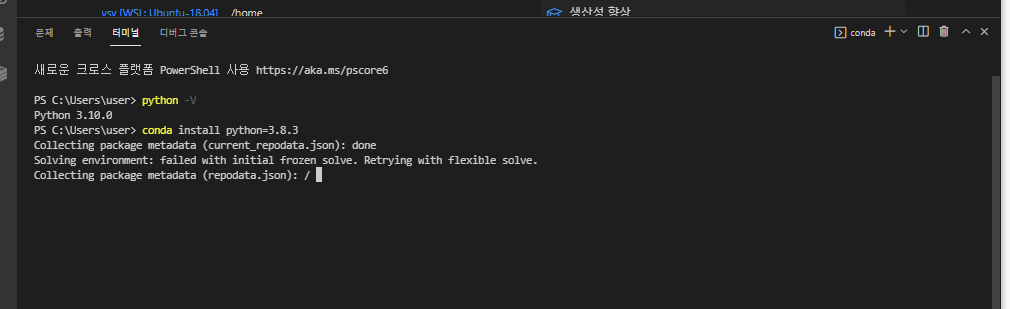 conda install python=3.8.3 으로 파이썬 다운그레이드 편리하게 하려고 했는데
