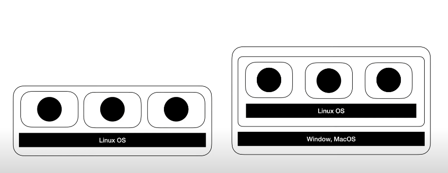 1. 도커 안에 각각의 컨테이너 안의 돌아가는 앱은 리눅스 위에서 돌아가는 앱이다.