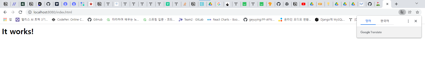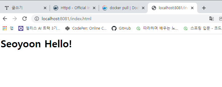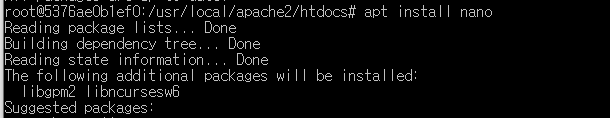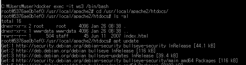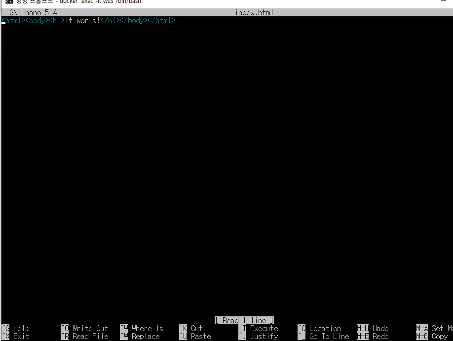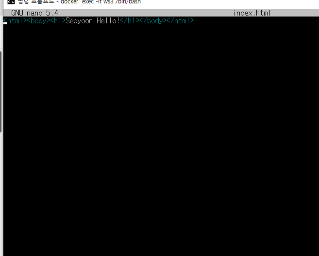 그럼 이제 저 index.html을 수정해보자 컨테이너 안으로 들어가서 수정하자