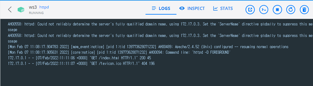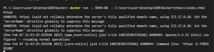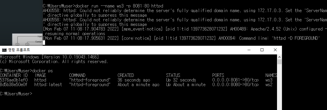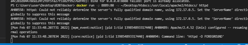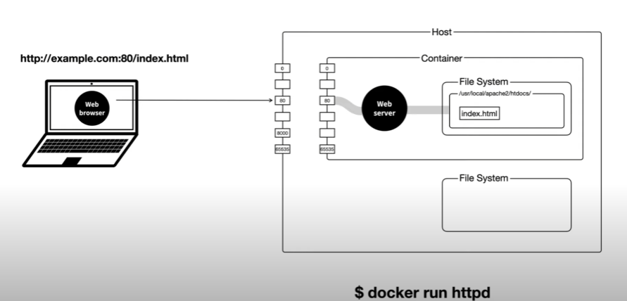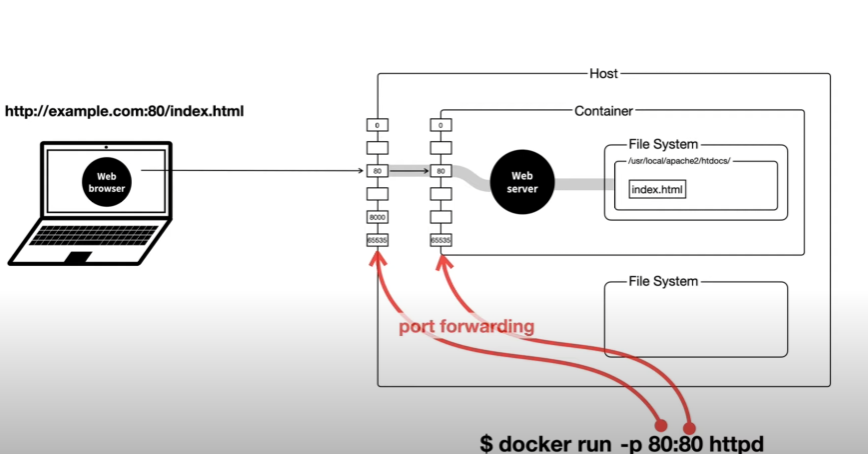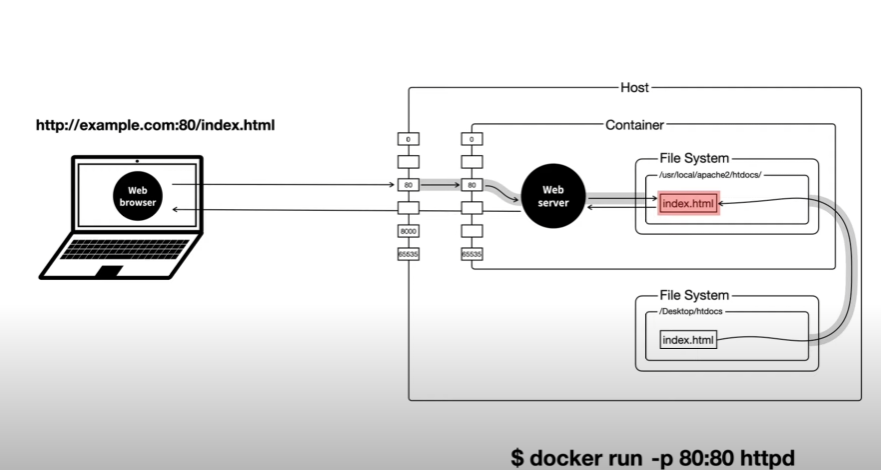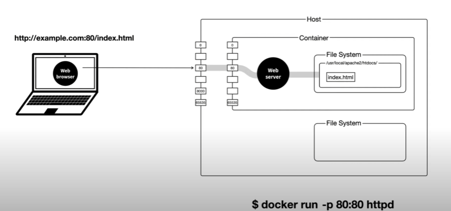 그 다음 host의 80번포트와 컨테이너의 80번 포트를 연결 docker run -p 80:80 httpd