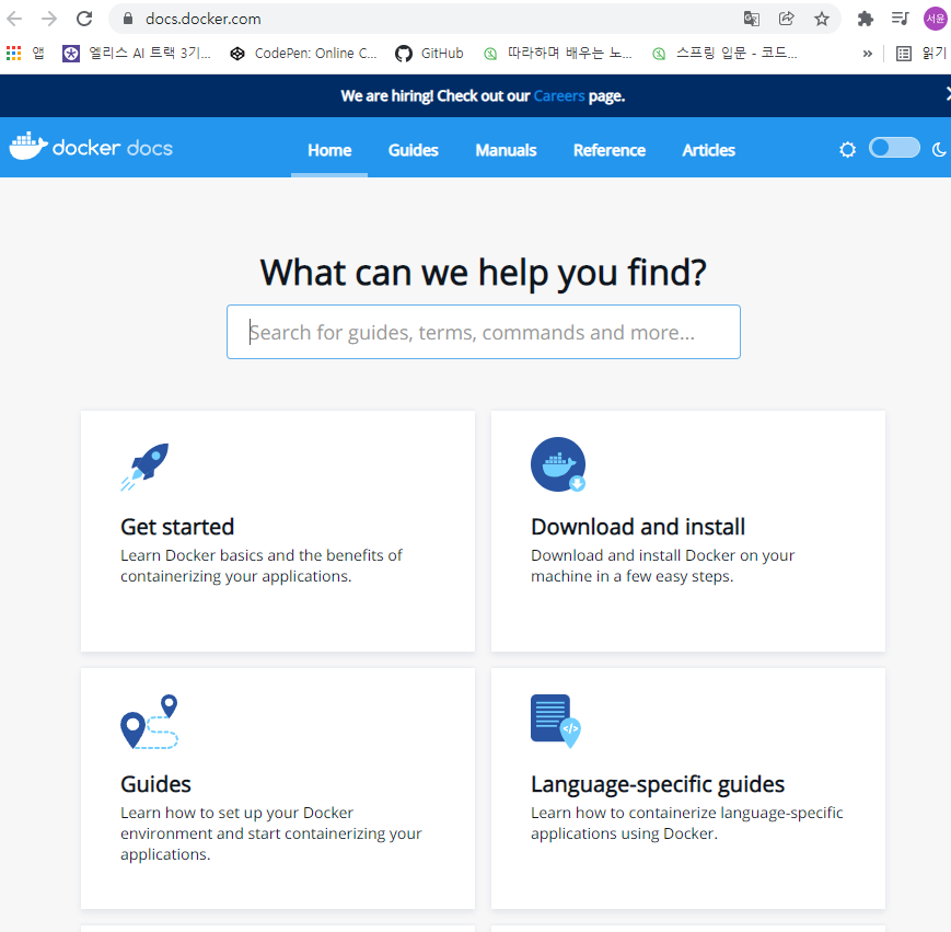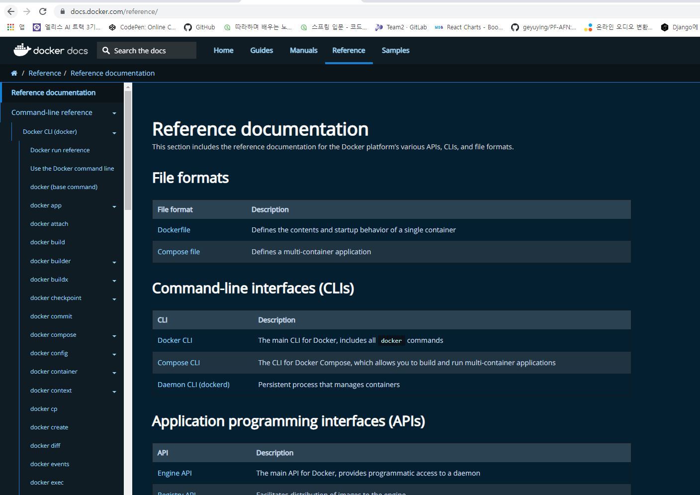 도커 공식사이트에서 reference 참조해서 명령어 보기