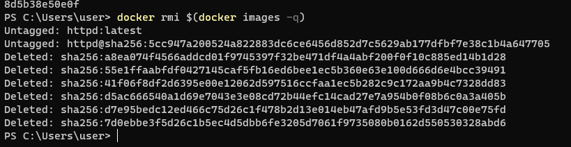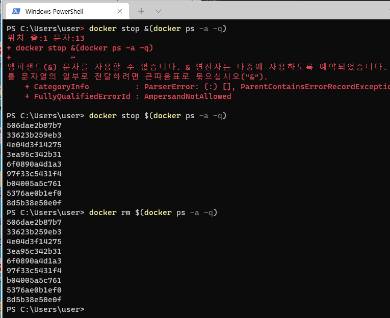 윈도우 cmd말고 powershell에서 도커 컨테이너/이미지 삭제하기