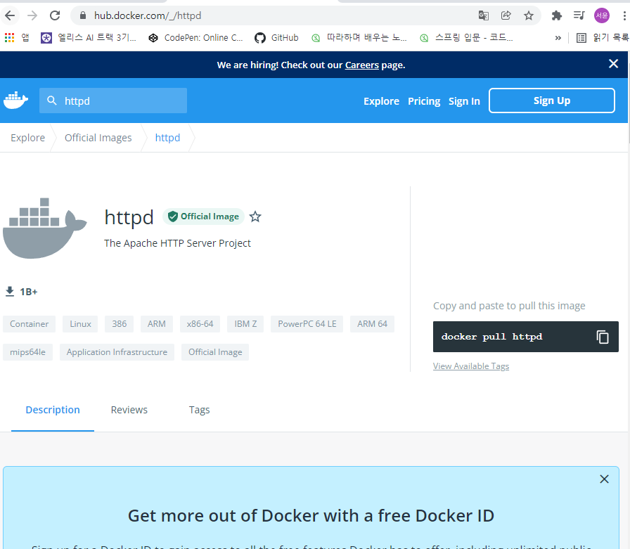 예시로 우리는 아파치?라는 웹서버가 있는 이미지를 다운받고싶다!