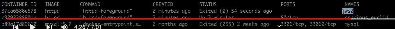 하나의 이미지는 여러개의 컨테이너를 생성할 수 있다. 아까는 ws1 컨테이너였는데 이번엔 ws2컨테이너를 또 만들어보자