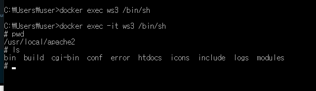 docker exec -it ws3 /bin/bash 이건 배쉬쉘 사용!