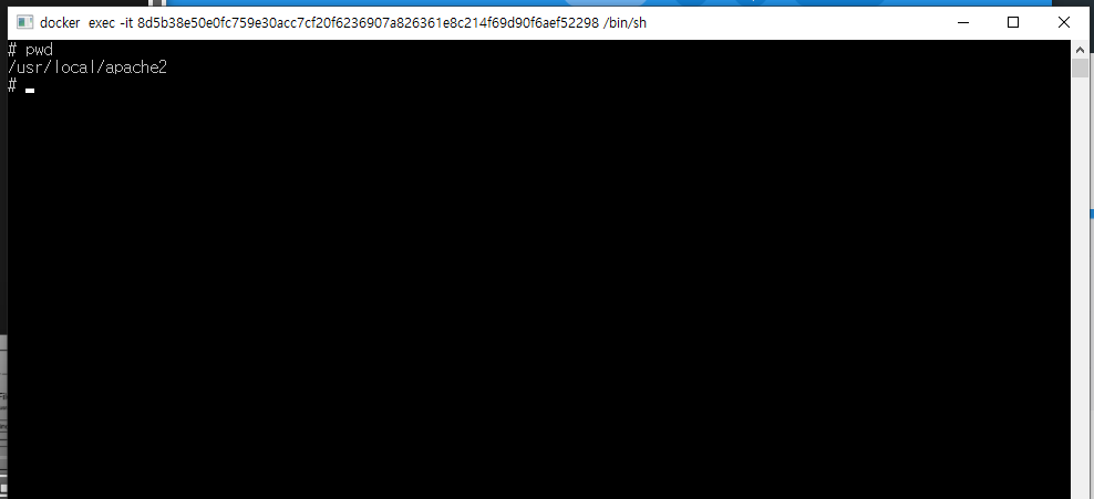 그런데 컨테이너에서 지속적으로 연결하면서 명령어를 입력하려면? exec -it bin/sh 사용 ( -it는 운영체제적으로 지속적으로 연결할 떄 쓰는 옵션이다~라고만 일단 이해하자)