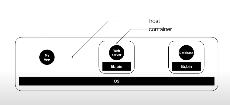 도커 안에 있는 운영체제 : Host라고 부른다. 하나의 host내에 여러 컨테이너가 들어있을 수 있다. 각자 독립적인 파일시스템과 포트를 가지고 있다.