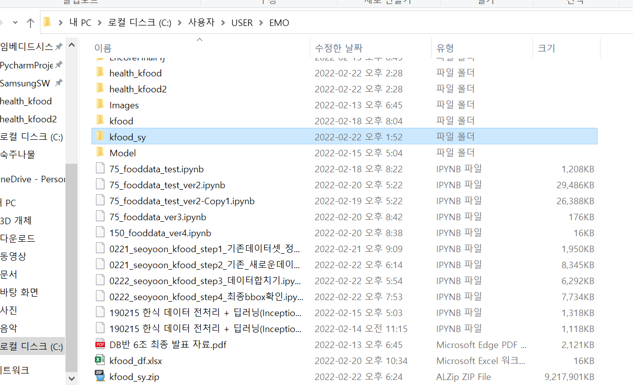 데이터셋 폴더 kfood_sy