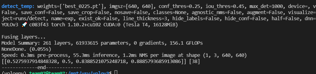 아까 학습 완료된 weight 사용? 또는 yolov3.pt 다시한번 사용?