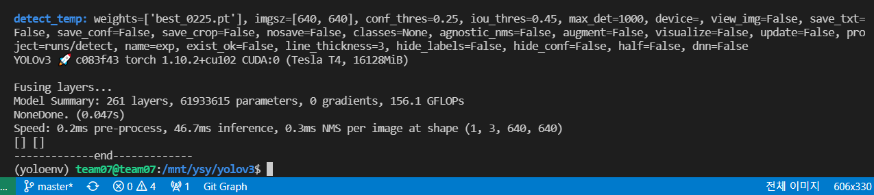 이번엔 그럼 수정 전 detect.py 파일(detect_1.py로 돌려보았다)