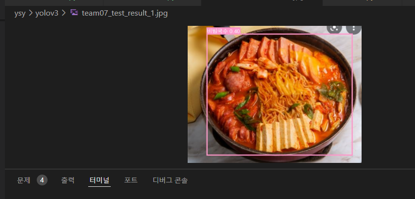 그럼 이제 inference 코드 실행(원래는 python detect.py --weights 원하는모델 인데 우리는 이렇게 수정했다)