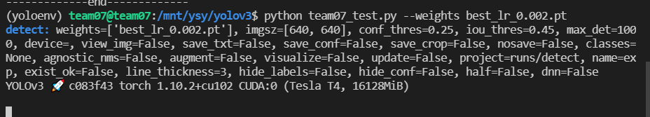 python team_07_test.py --weights 원하는모델 # 여기서는 best_lr_0.002.pt
