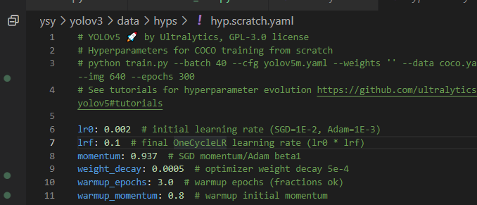 처음에 하이퍼 파라미터를 찾을 떄는 : yolov3.pt를 사용
