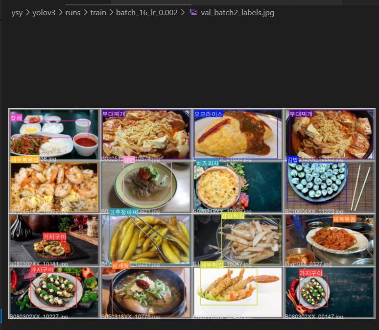 lr이 0.002로 학습된 모델도 역시나 음식이 여러개 있는 건 잡지 못했다.
