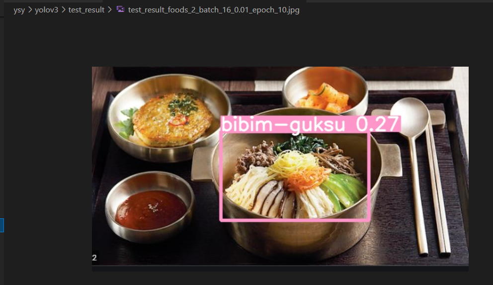 python train.py --img 640 --batch 16 --epochs 10 --data kfood.yaml --weights yolov3.pt --name batch_16_0.01_epoch_10
