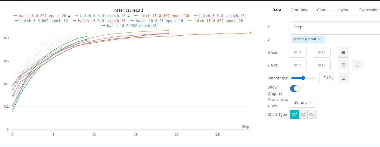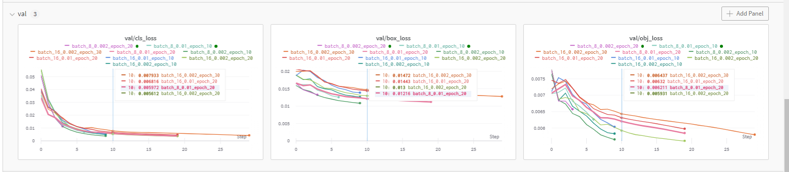 - lr을 0.002로 하는 이유는 0.01보다 더 좋은 성능이 나왔기 때문! (우리 데이터셋을 사용하면 COCO 데이터셋을 학습시킬 때보다 global minimum loss function을 찾아갈 때 보폭을 조금 더 작게)