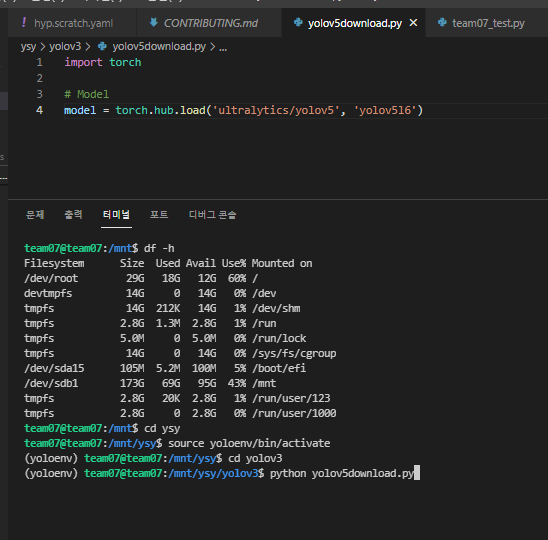 YOLOv5로 갈아끼워서 학습시키기 -> YOLOv5 GitHub에서 해야 된다. 다음포스팅 참고.