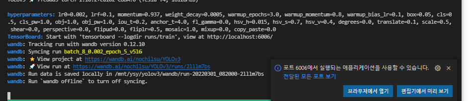 YOLOv3에서는 lr 0.002가 epoch 20 , batch 8,16에서 모두 좋은 결과를 나타냈으나 실제 inference를 해보면 그렇게 잘 잡지는 못하는 상황이었다. 따라서 YOLOv5로 모델을 변경해 training 을 진행해보자.