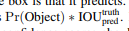 - 그렇지않으면(Otherwise) predict box와 실제값(ground truth)사이의 IOU(Intersection Over Union)으로 준다.