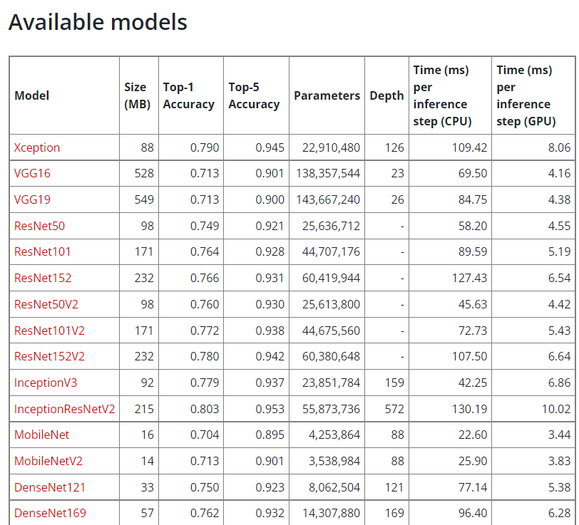그럼 keras가 제공하는 모델들은 어떤어떤 게 있을까